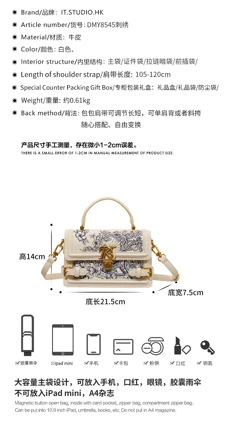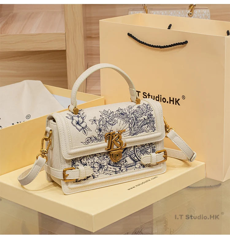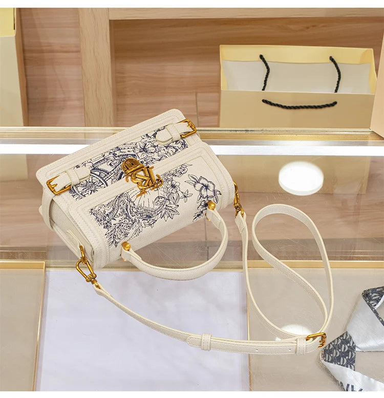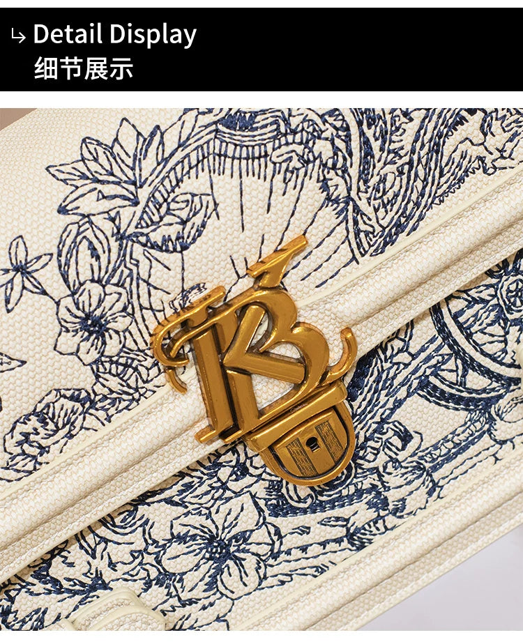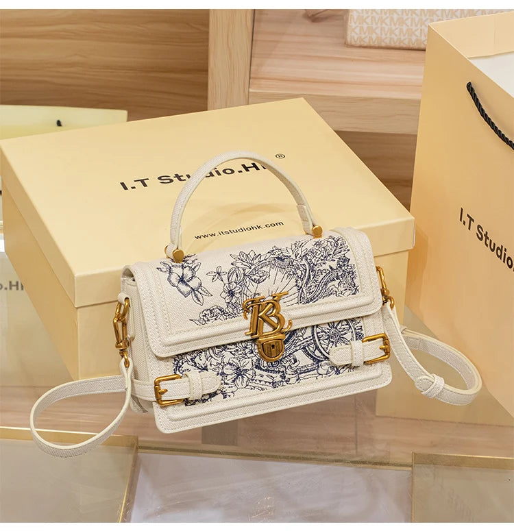 Women's handbag, handbag, women's new high-end texture summer designer single shoulder crossbody embroidered square bag.