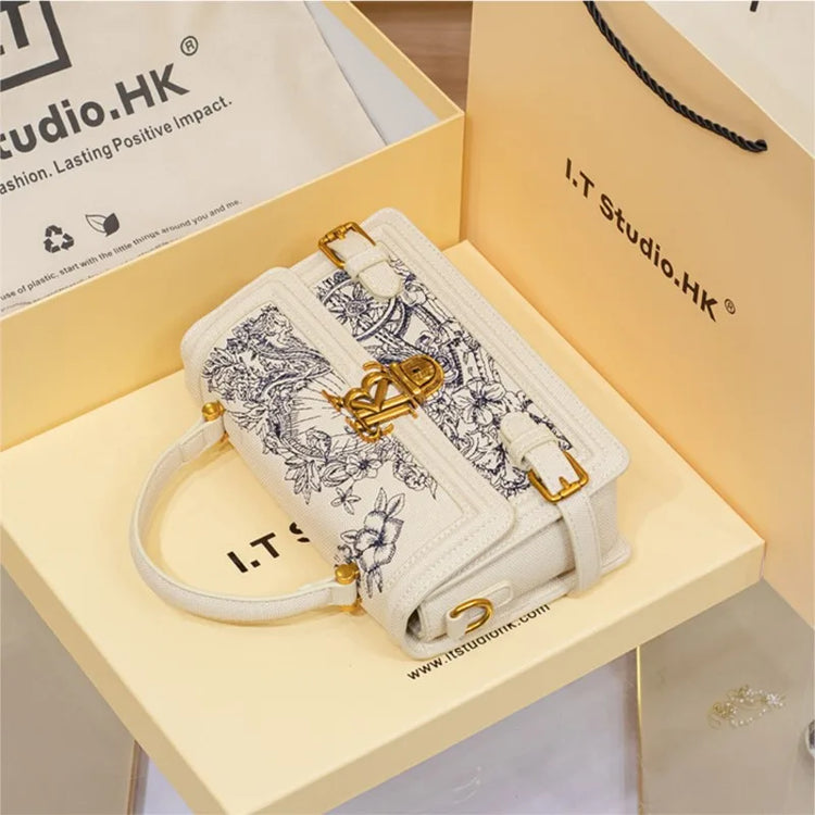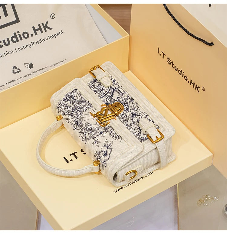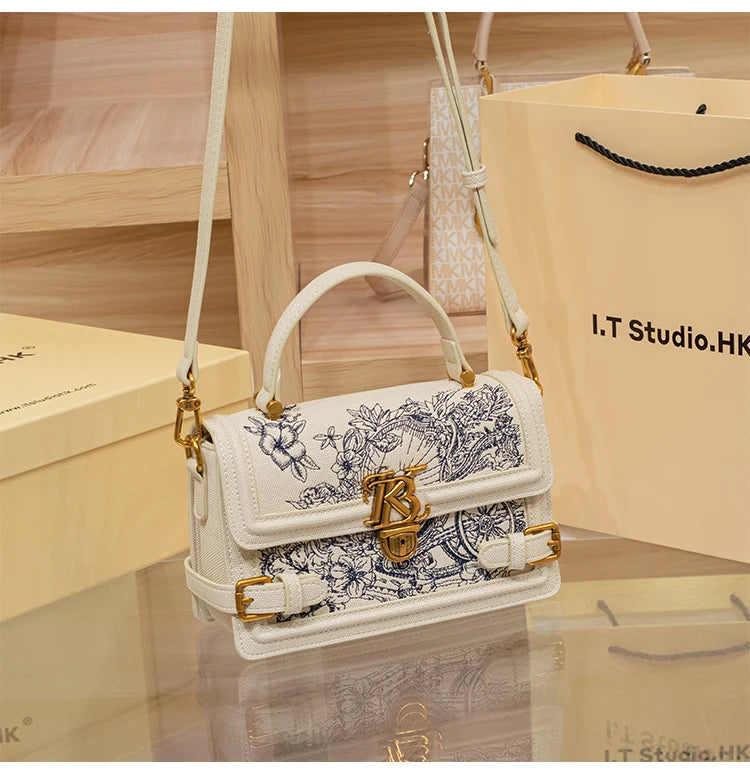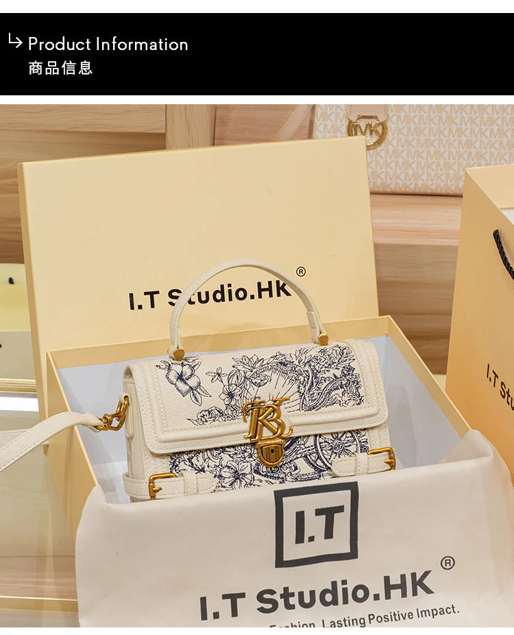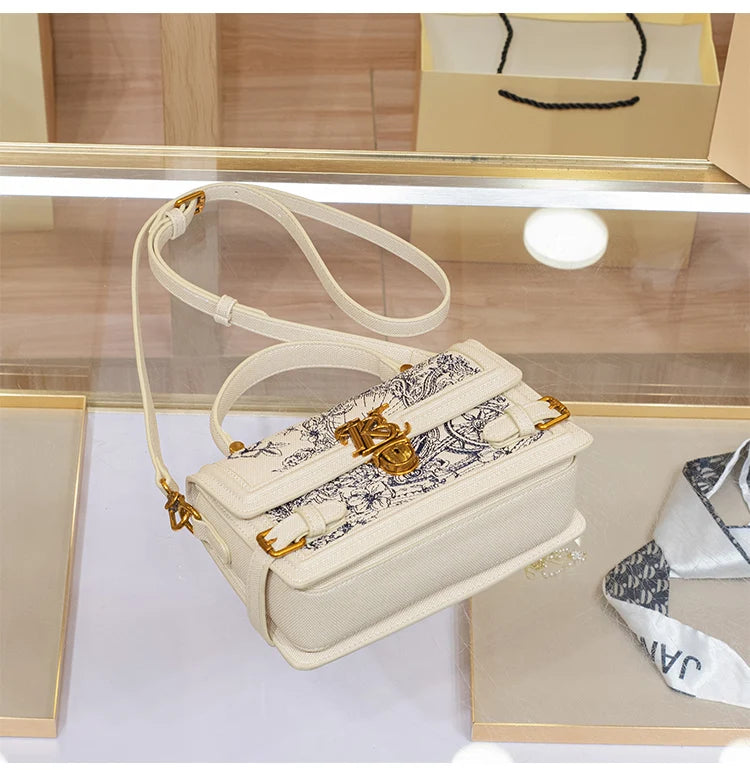 Women's handbag, handbag, women's new high-end texture summer designer single shoulder crossbody embroidered square bag.