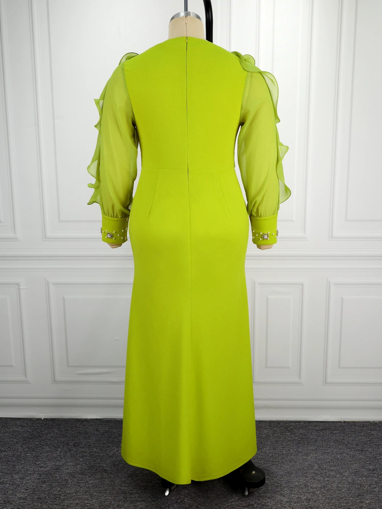 Luxury Women Party Peplum Maxi Dress. V Neck Long Sleeve Slit Package Dress. Hip Bodycon Elegant Wedding Evening Party Dress.