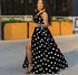 Sexy Deep V Neck Polka Dot Long Dress For Women. Summer Boho Sleeveless Slim Print Side Slit Party Maxi Dresses.