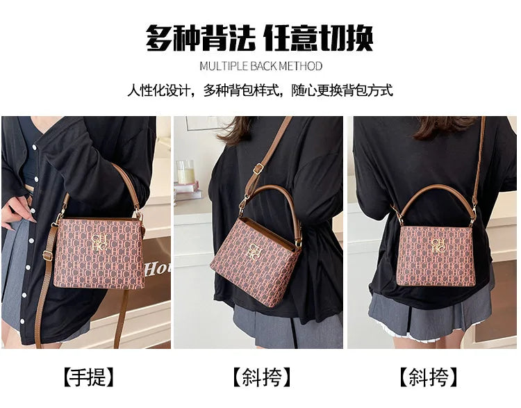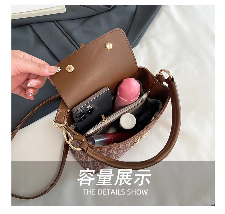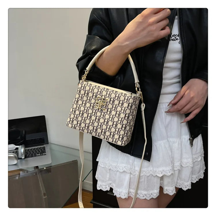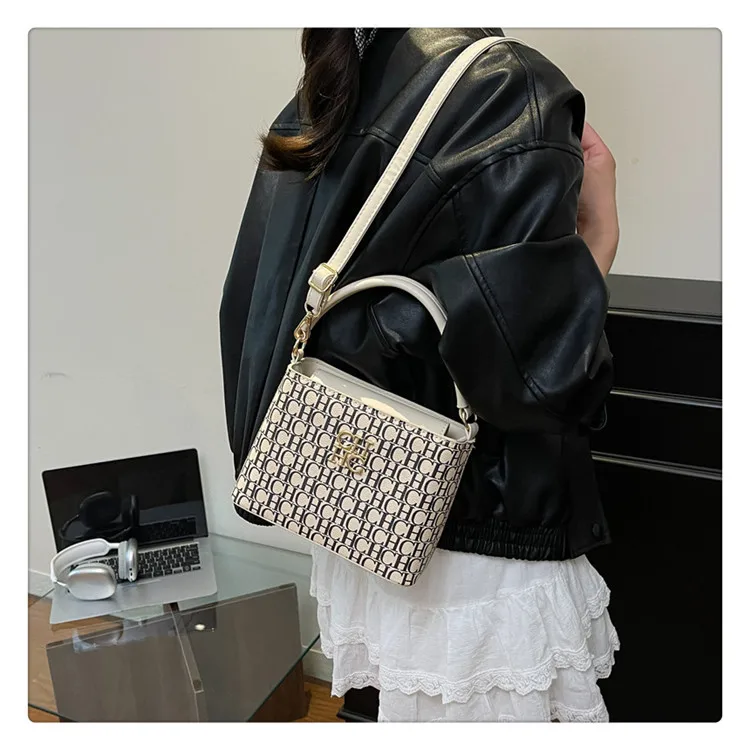 The Handheld Bucket Bag is designed for versatility, offering a large capacity for everyday essentials. Its multi-functional style allows it to be used as both a shoulder and crossbody bag, accommodating various user preferences. This handbag's thoughtful design includes compartments that enhance organization and accessibility, making it suitable for diverse occasions.