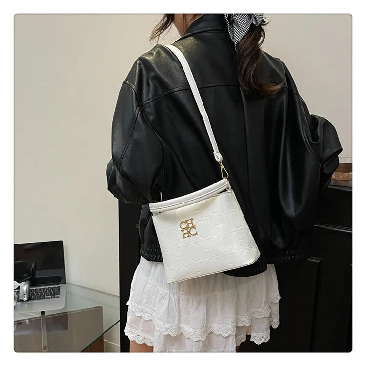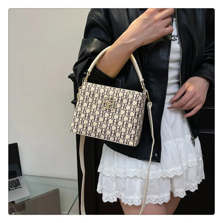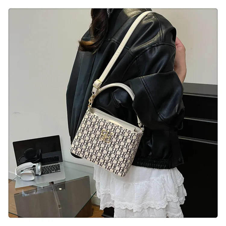 Handheld Bucket Bag For Women Shoulder Crossbody Bag. Fashion Large Capacity Trendy Handbag. Versatile Compartment Underarm Letter Bag.