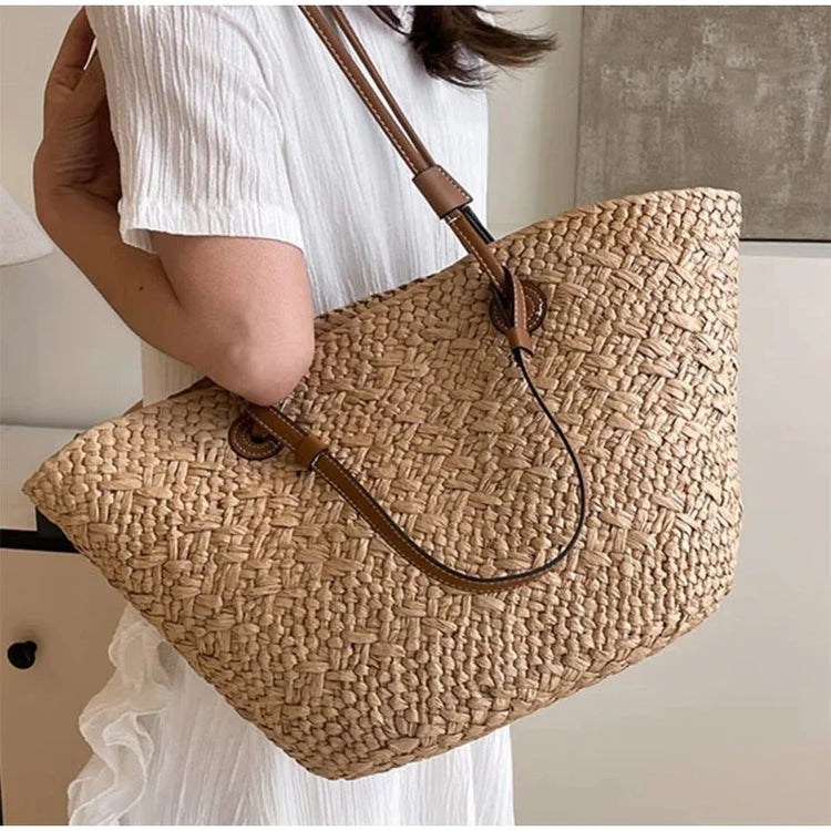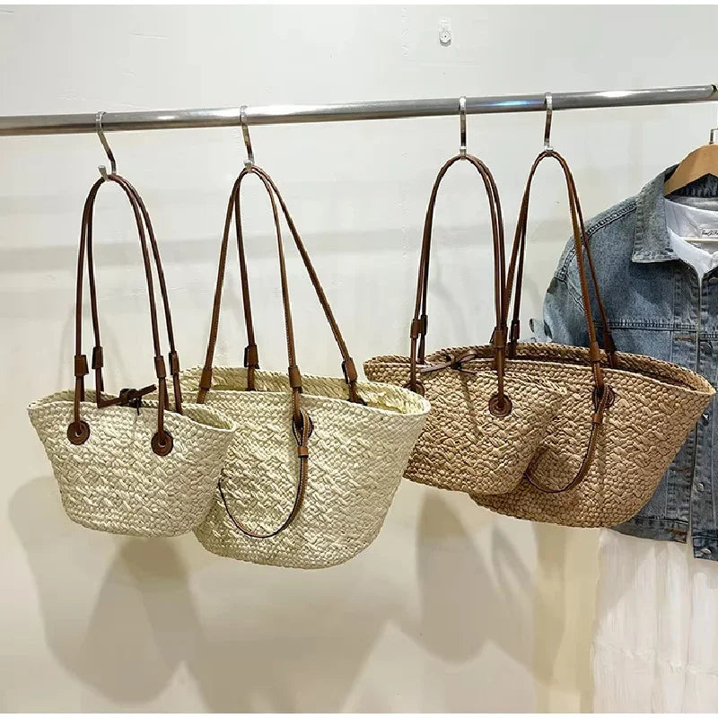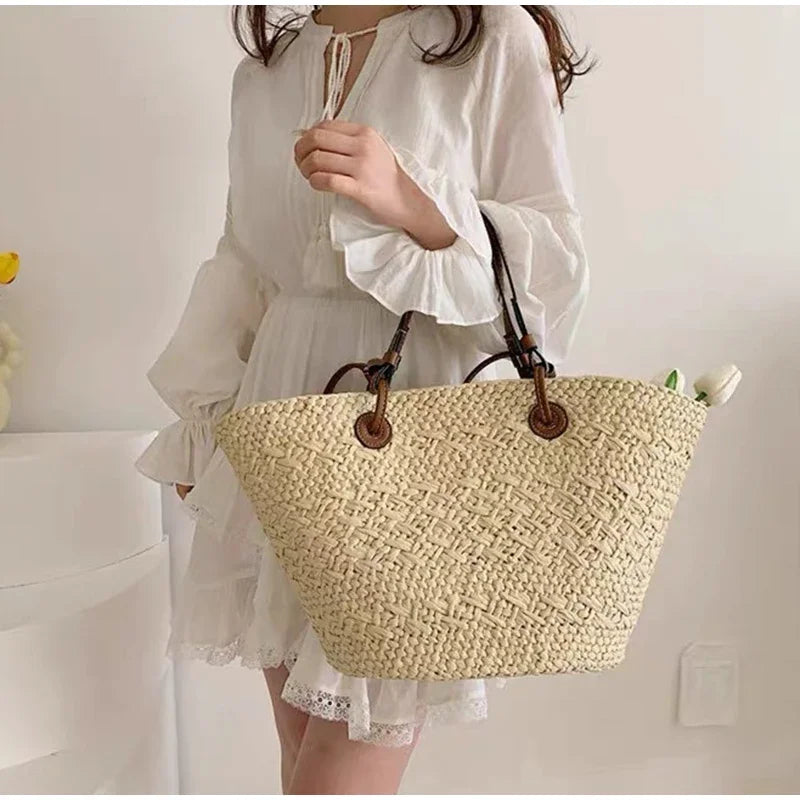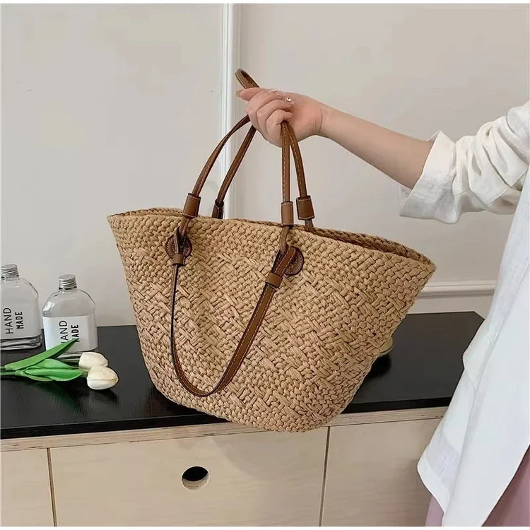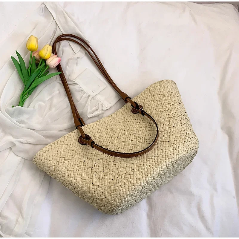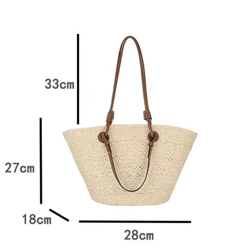 Perfect Vacation Storage Bag. Large capacity Straw Woven Tote Bag. Women Summer Beach Bag. Casual French Style Underarm Shoulder Bag.