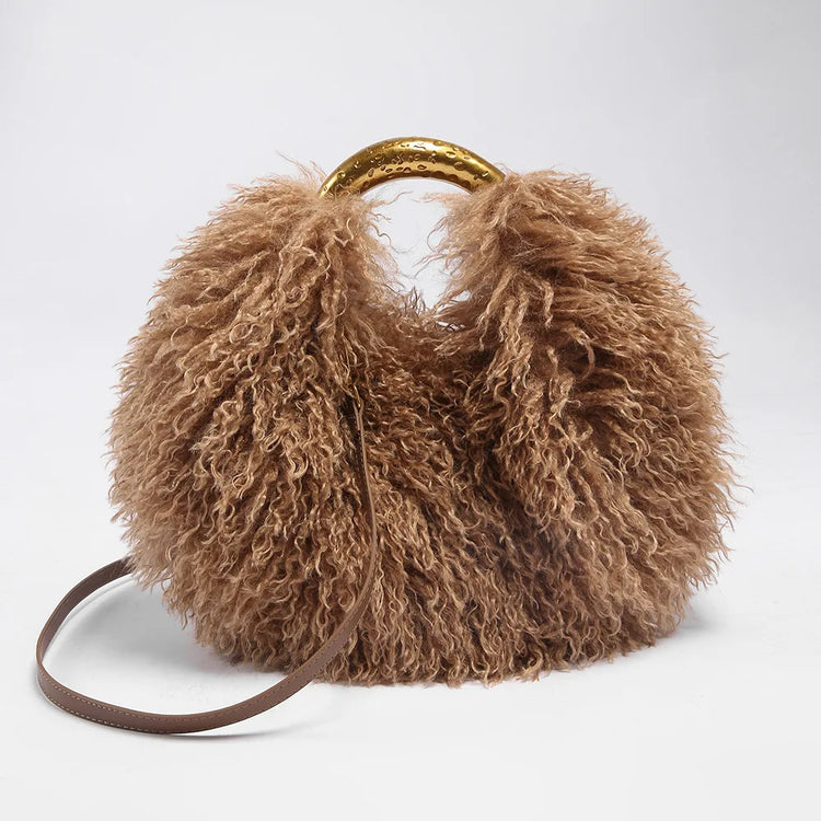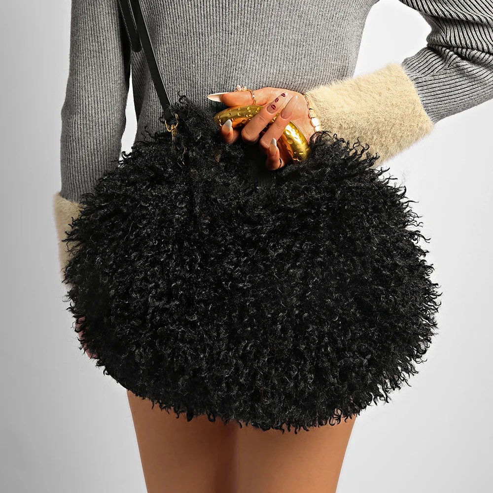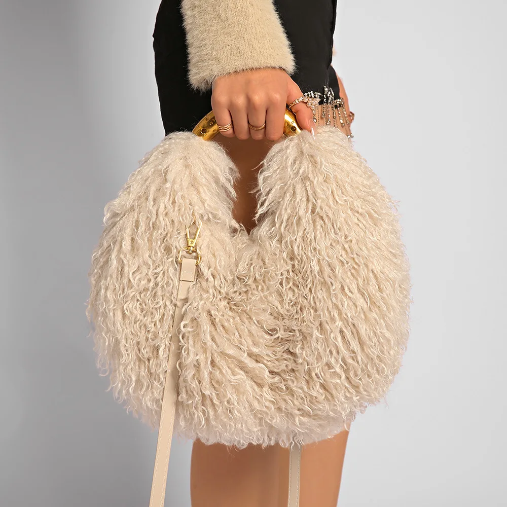 Solid Color Plush Women's Shoulder Bags Exquisite Handle Female Handbag Casual Versatile Furry Ladies Messenger.