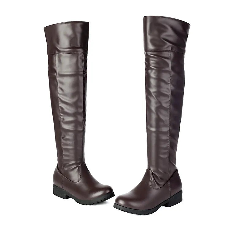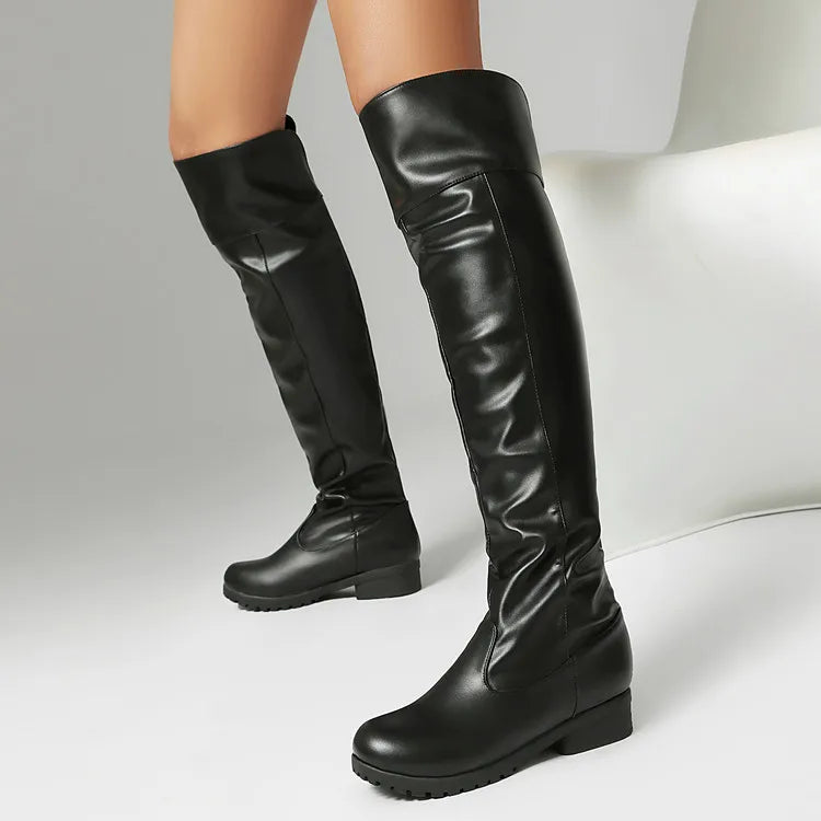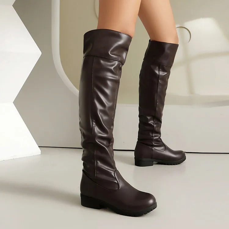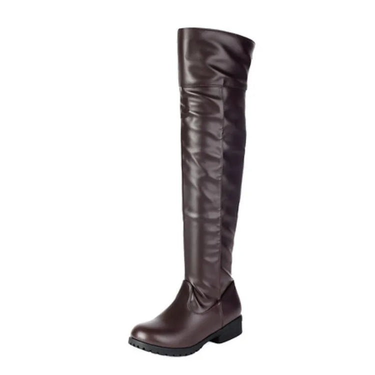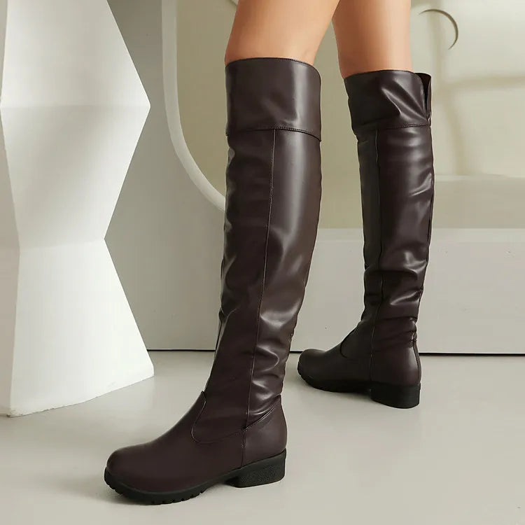 2025 Ladies Thigh High Footwear Round Toe Thick Heels 3cm Big Size 49 50 51 Casual Winter Knee High Boots.