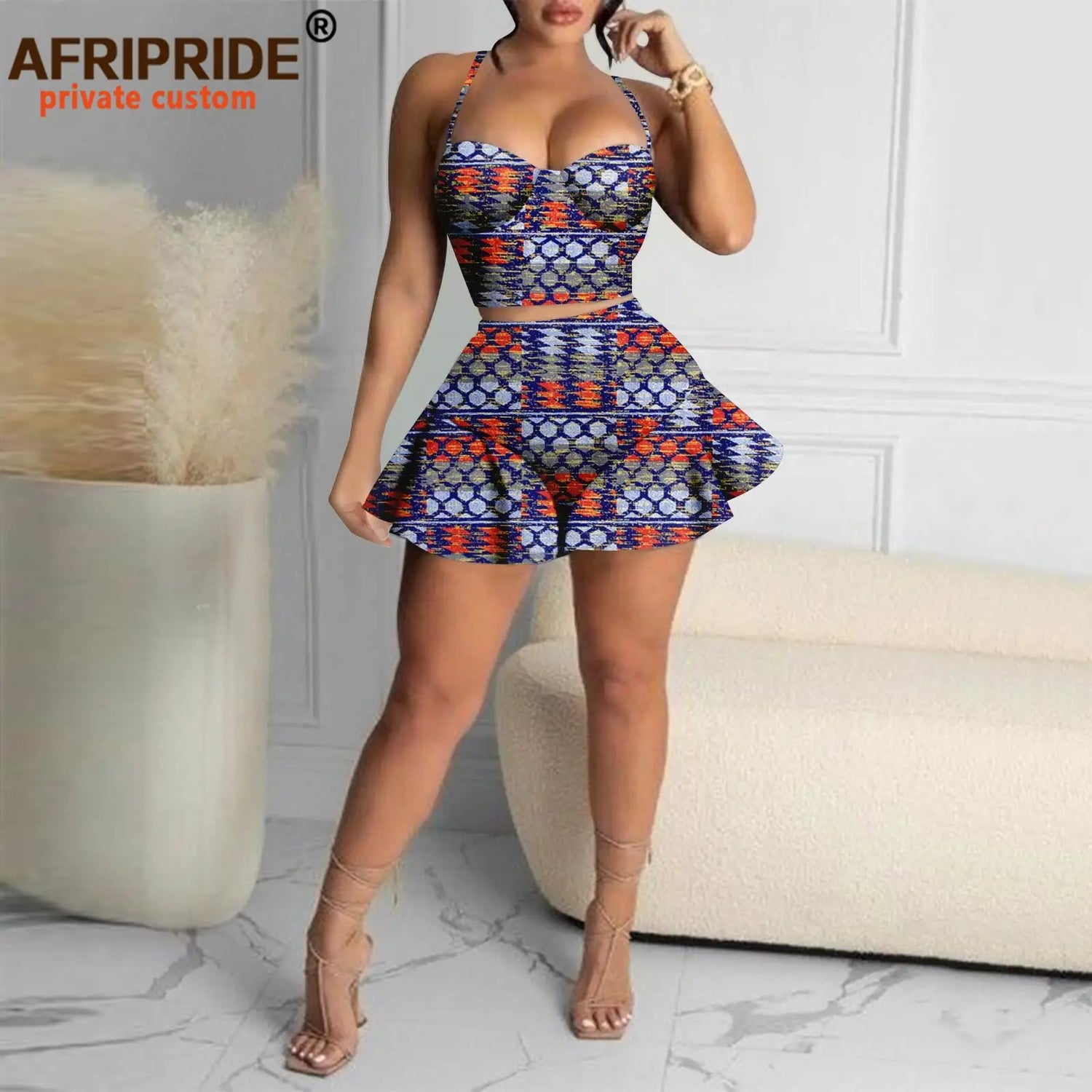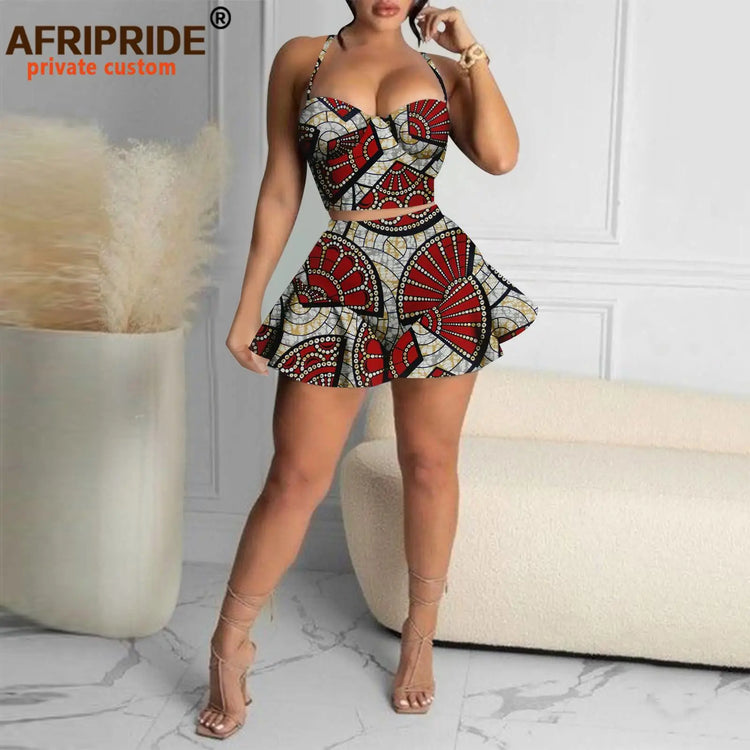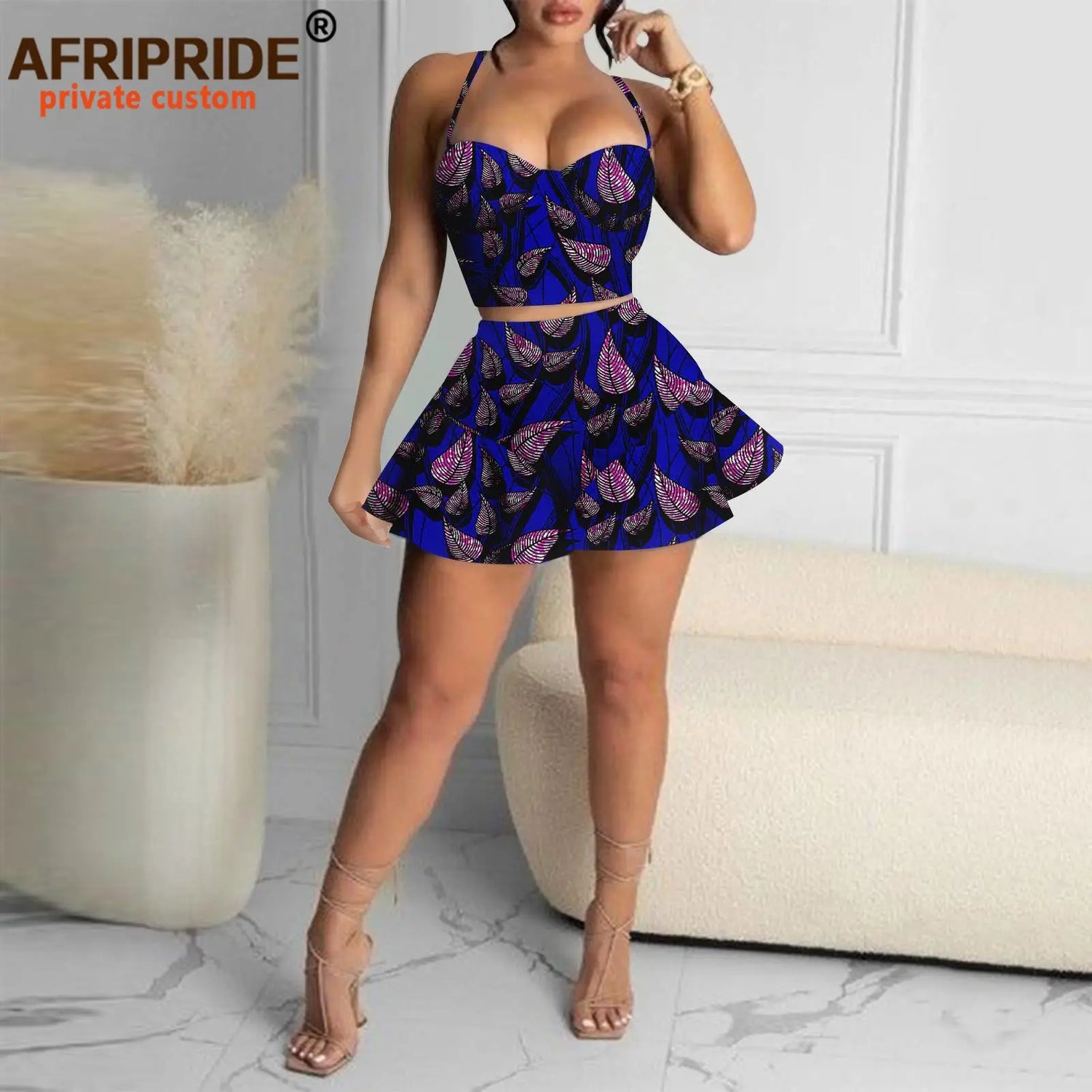 Clothes for Women Crop 2 Piece Set Sexy Party Print Attire Ankara Outfits Dresses.
