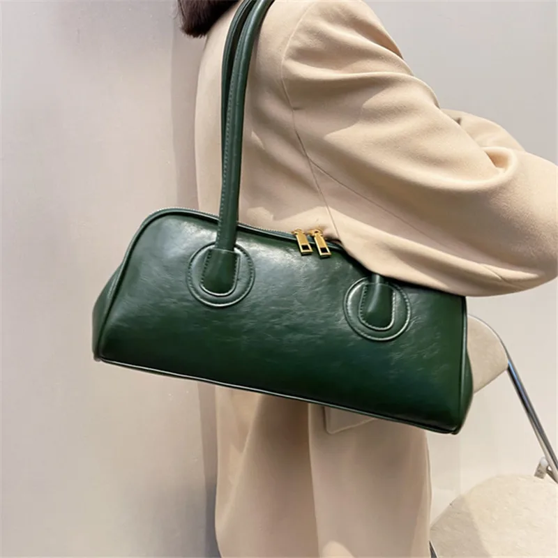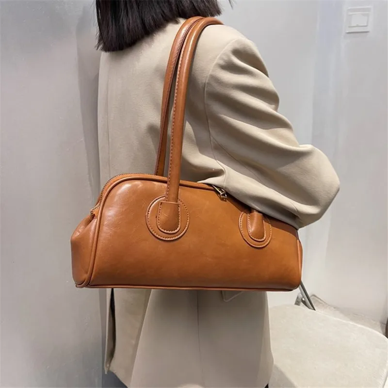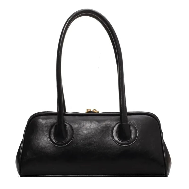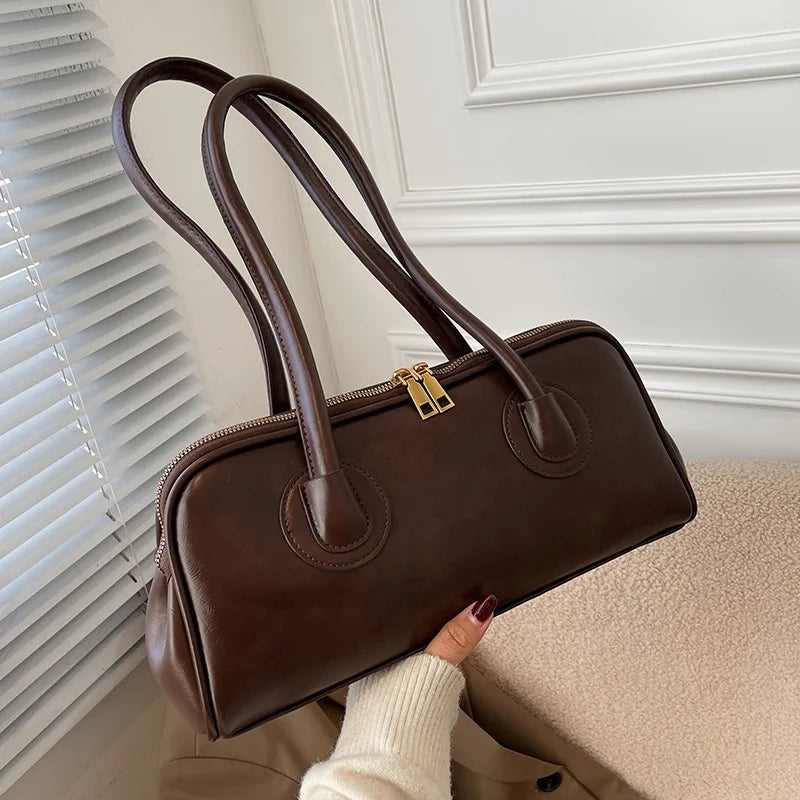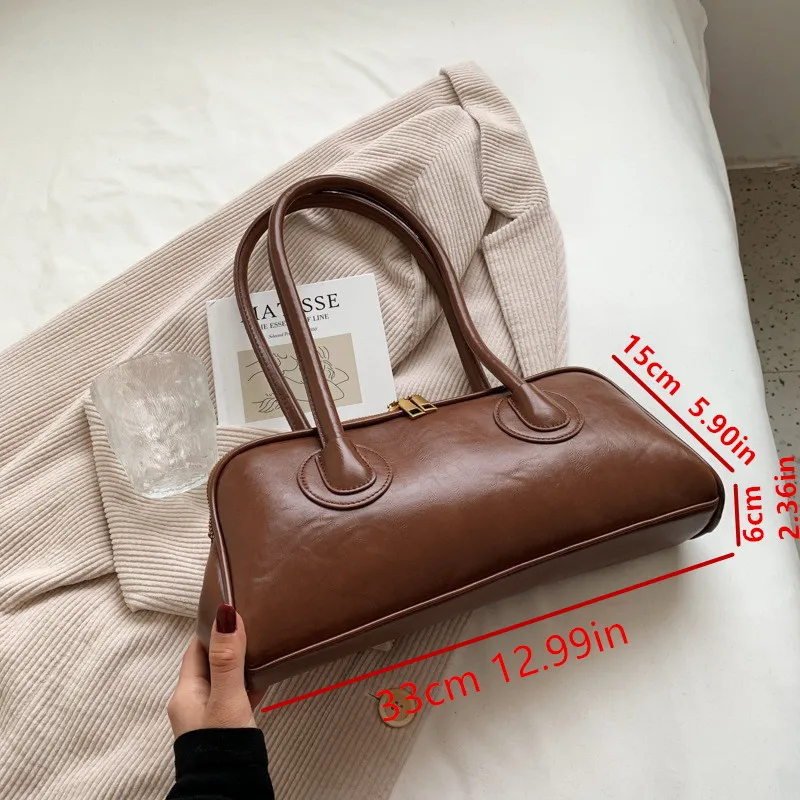 Classic Leather Handbag. Retro Simple Shoulder Underarm Bag. Elegant Stylish Baguette Tote Bag.