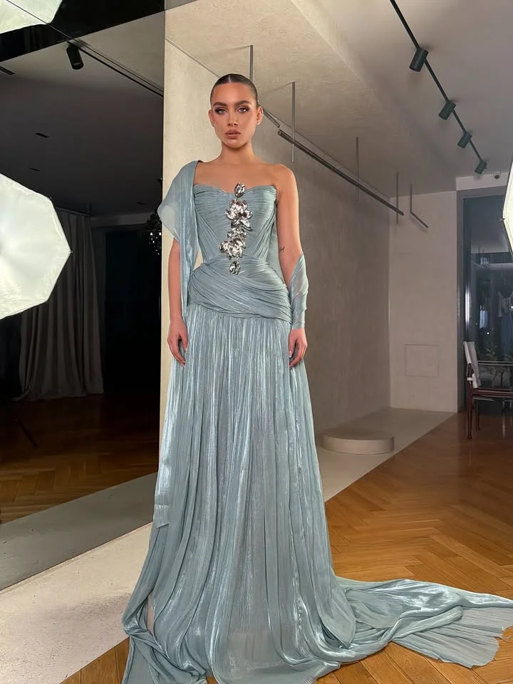 Discover the elegance of our Woman Evening Dresses, crafted from luxurious satin in an A-line design. These stylish gowns are ideal for special occasions, offering a sophisticated silhouette that flatters various body types. The satin fabric provides a smooth, rich appearance suitable for formal events.