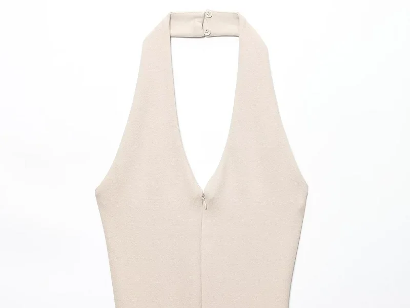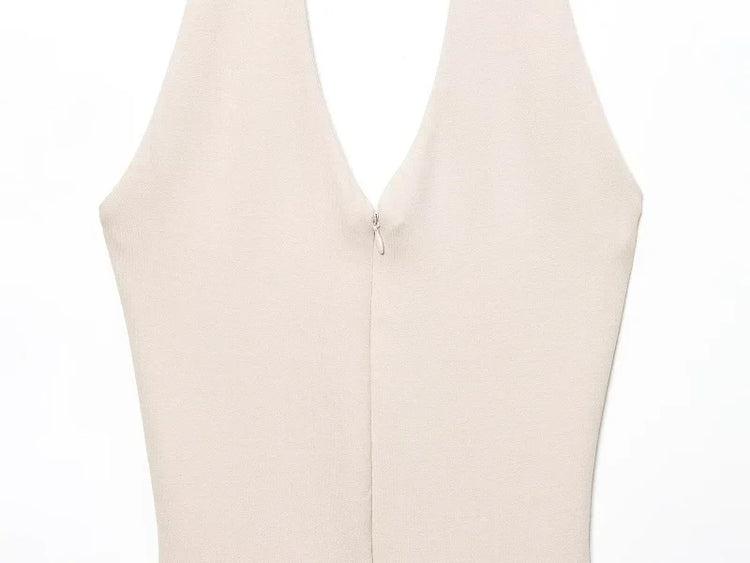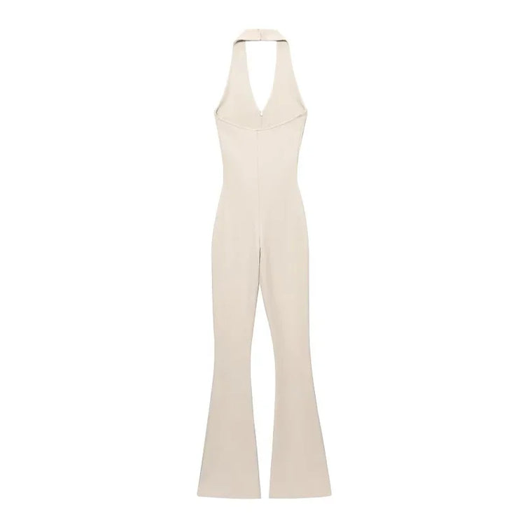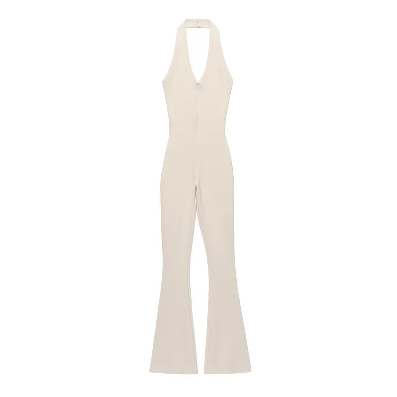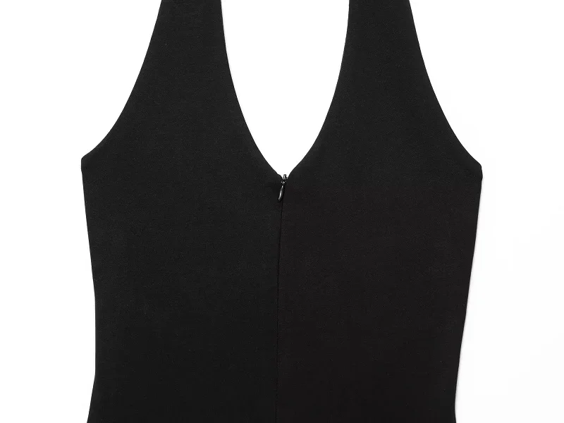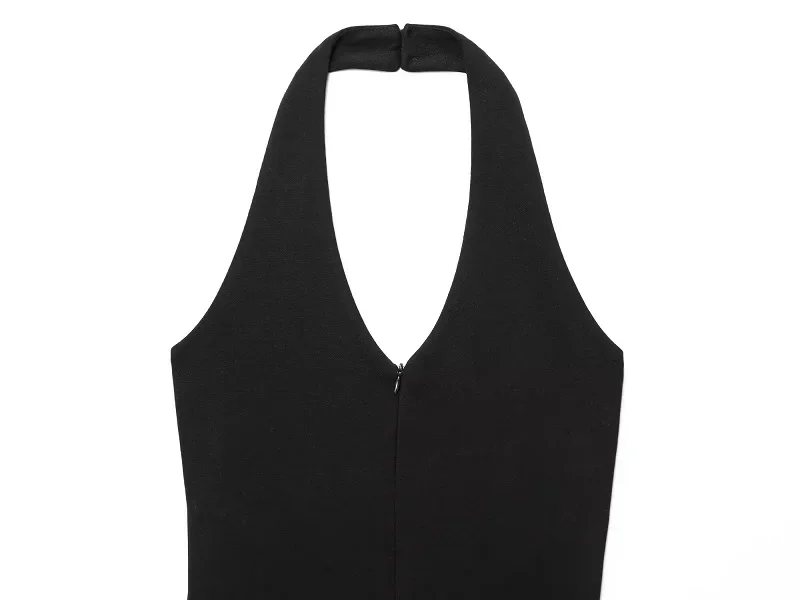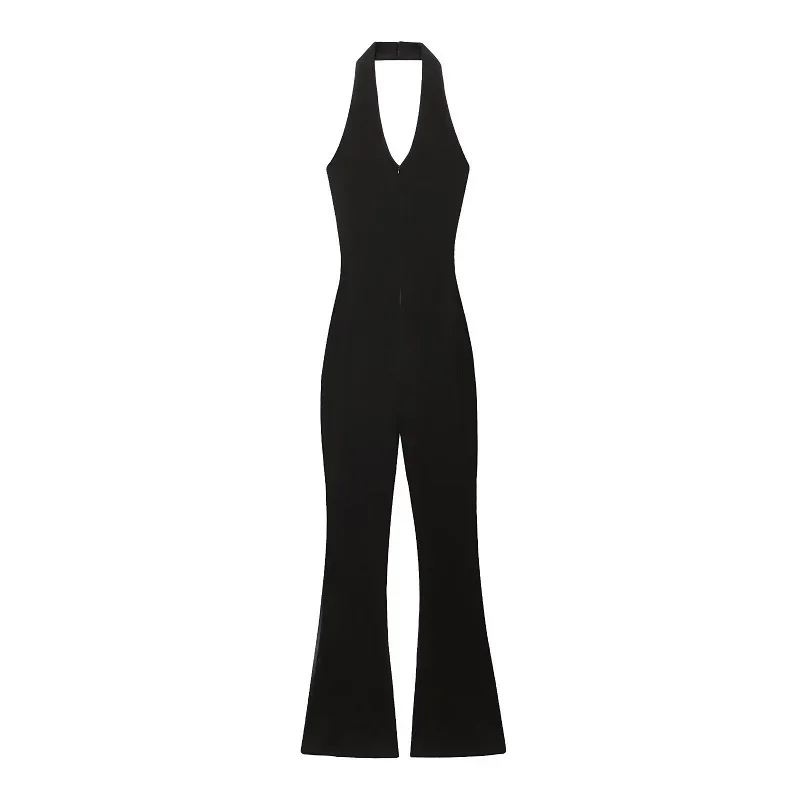 The Black Long Jumpsuit for Women features a backless design and a sleeveless corset bodysuit style, ideal for warm summer days. This halter overall offers a sleek silhouette, enhancing body shape while ensuring comfort. Its versatile design makes it suitable for various occasions, combining elegance with practicality.