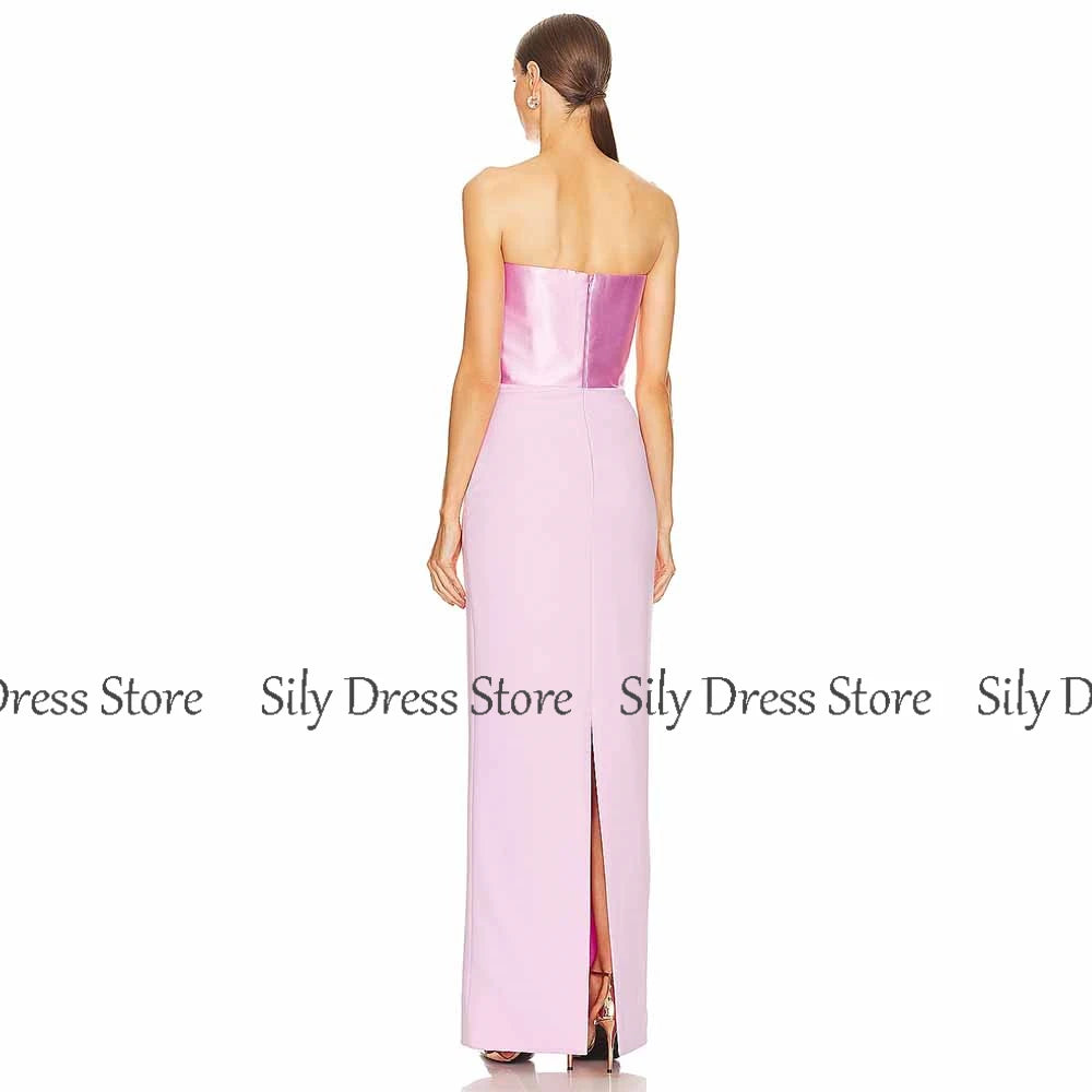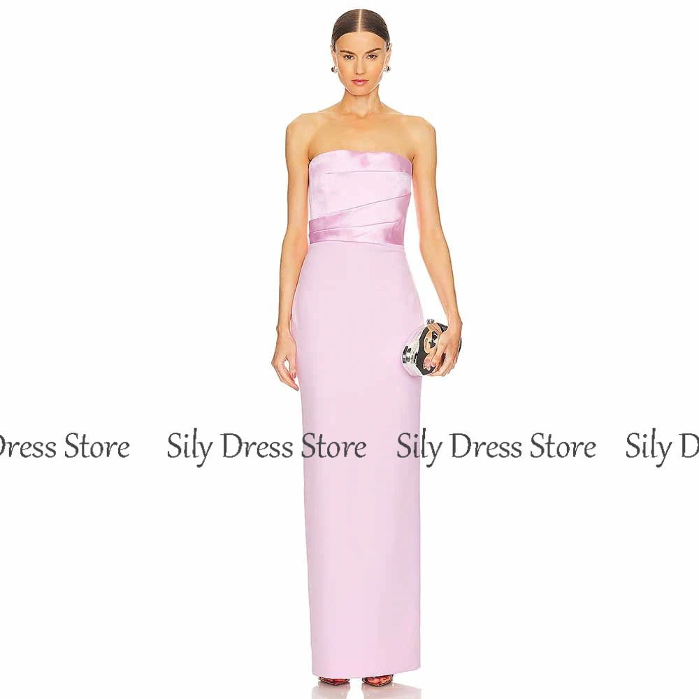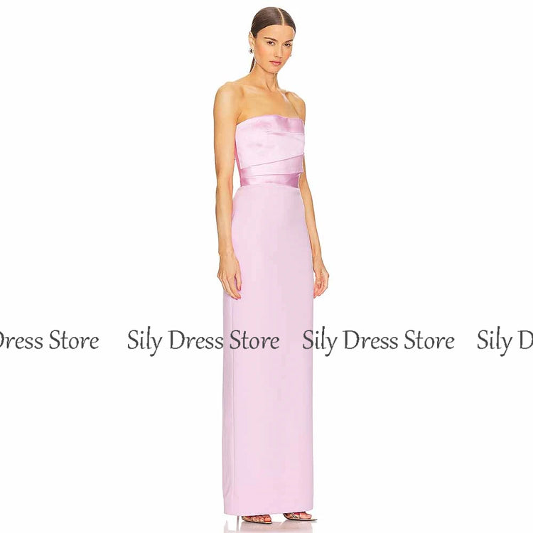 Simple Special Occasion Dresses Jersey Sheath/Column Valentine's Day Dress Satin Pink Strapless Criss-Cross Evening Dress Maxi