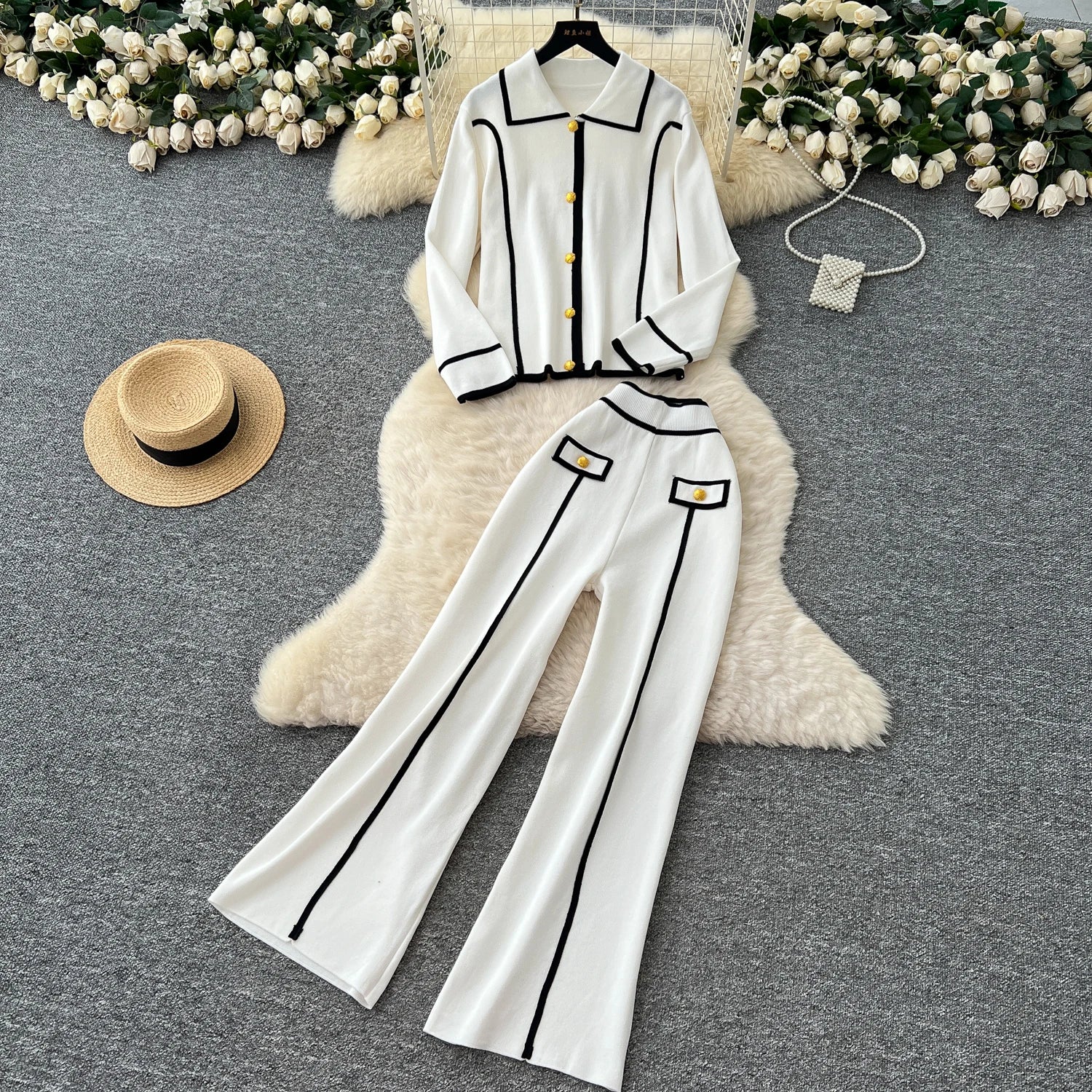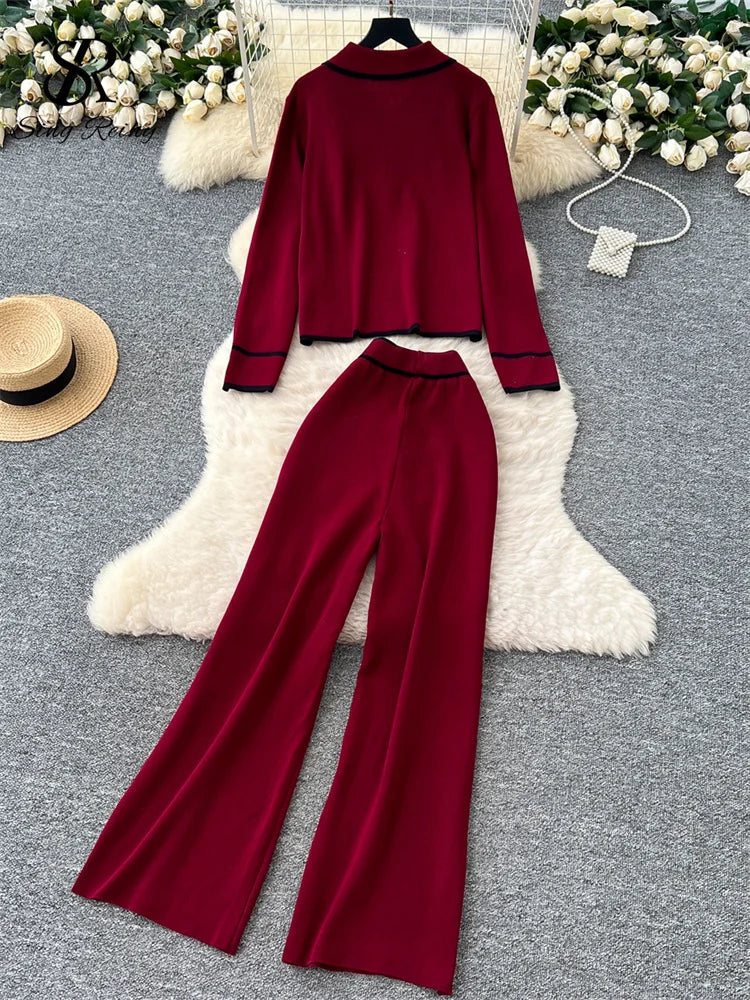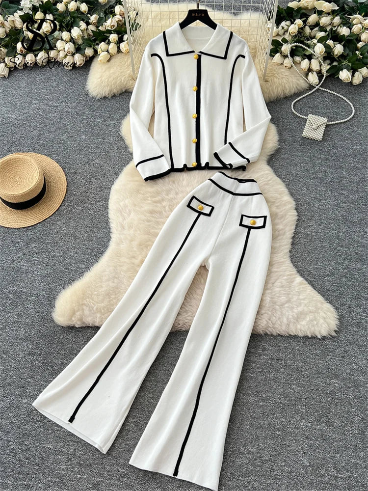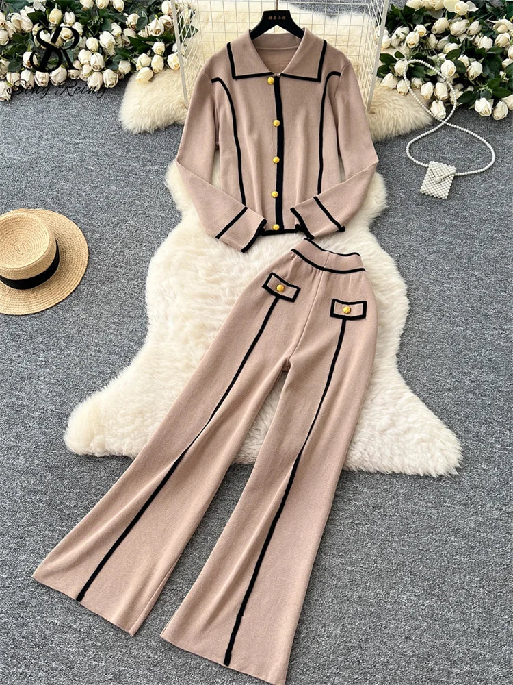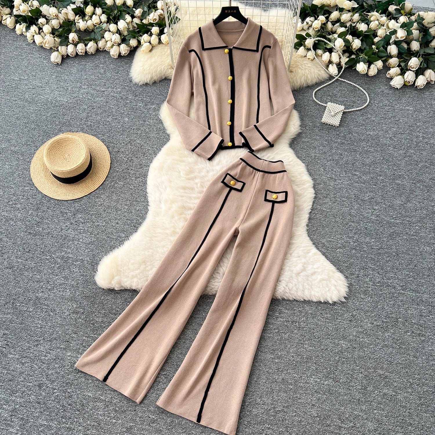 The SINGREINY Autumn Warm Two Piece Suit features a lapel neck buttoned top and elastic long pants, crafted from a comfortable knit material. This set combines functionality and style, providing warmth during cooler months while ensuring ease of movement. Ideal for casual settings, it promotes a polished appearance.