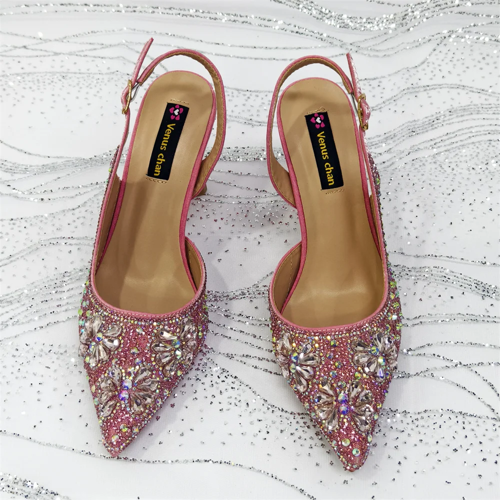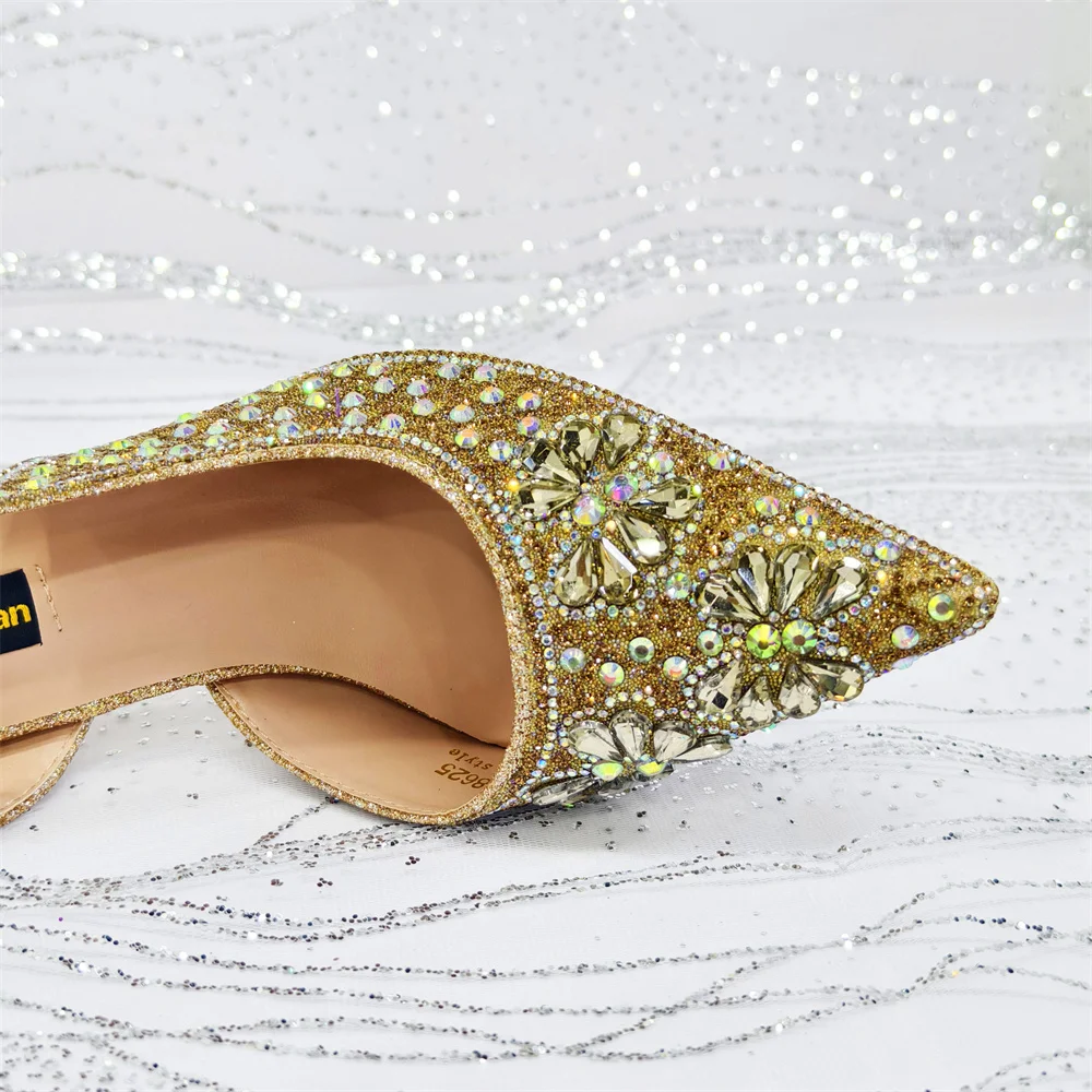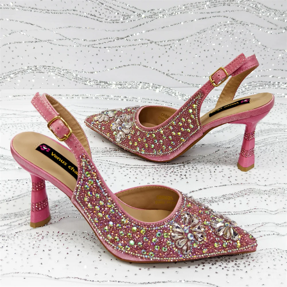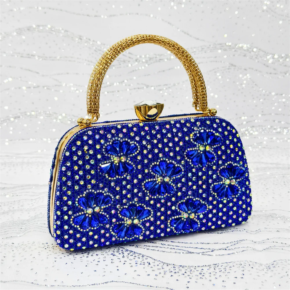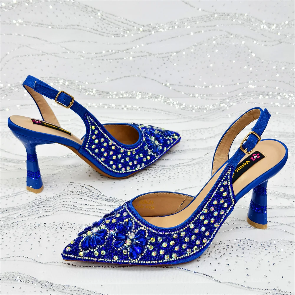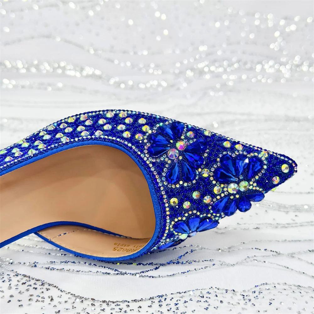 Women’s Purple High Heel Party Shoes and Rhinestone Handbag Set - Italian Design Wedding Style.