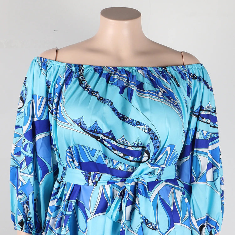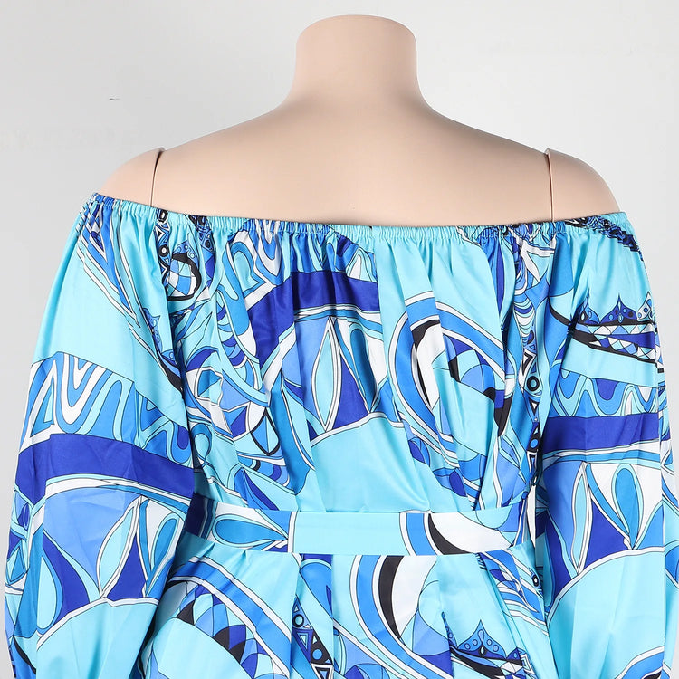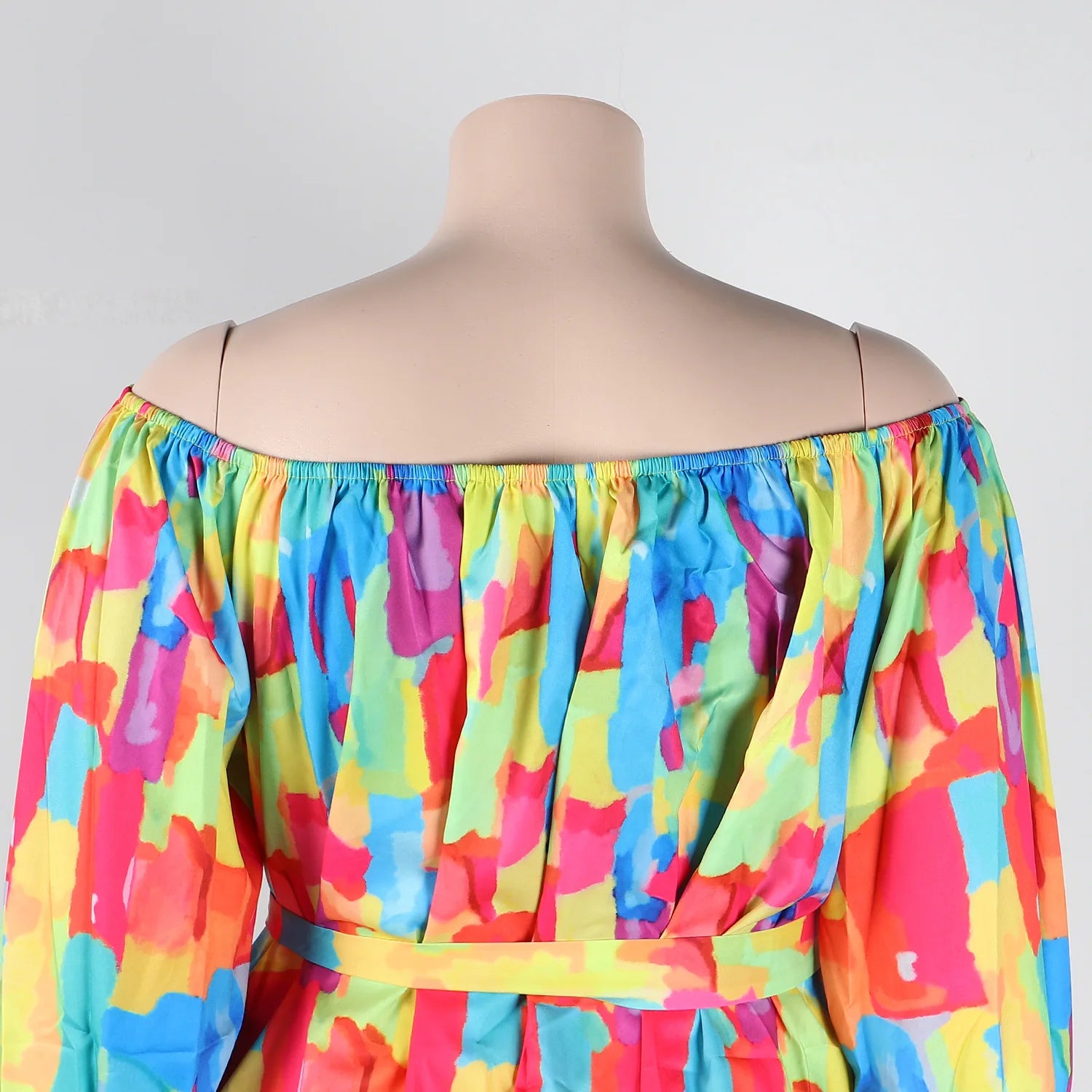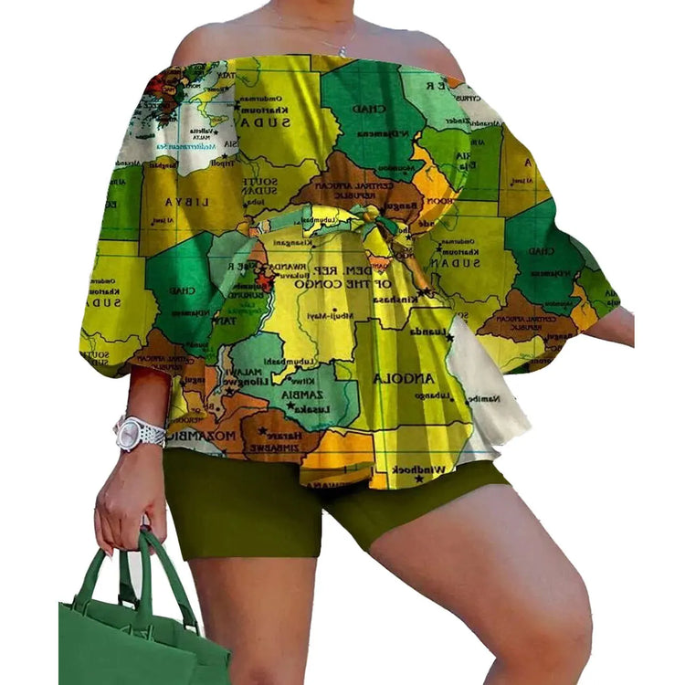 This plus-size two-piece set features an off-shoulder design and a vibrant print, enhancing comfort and style for summer wear. Available in sizes L to 3XL, it caters to diverse body types, ensuring a flattering fit. Ideal for wholesale dropshipping, it combines fashion versatility with practical convenience.