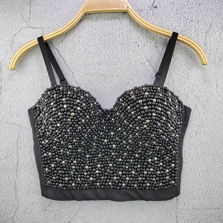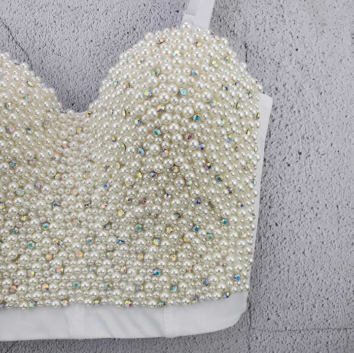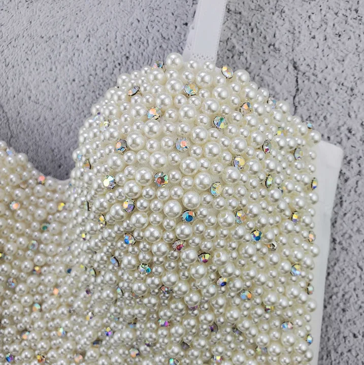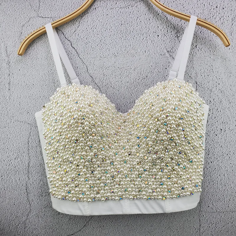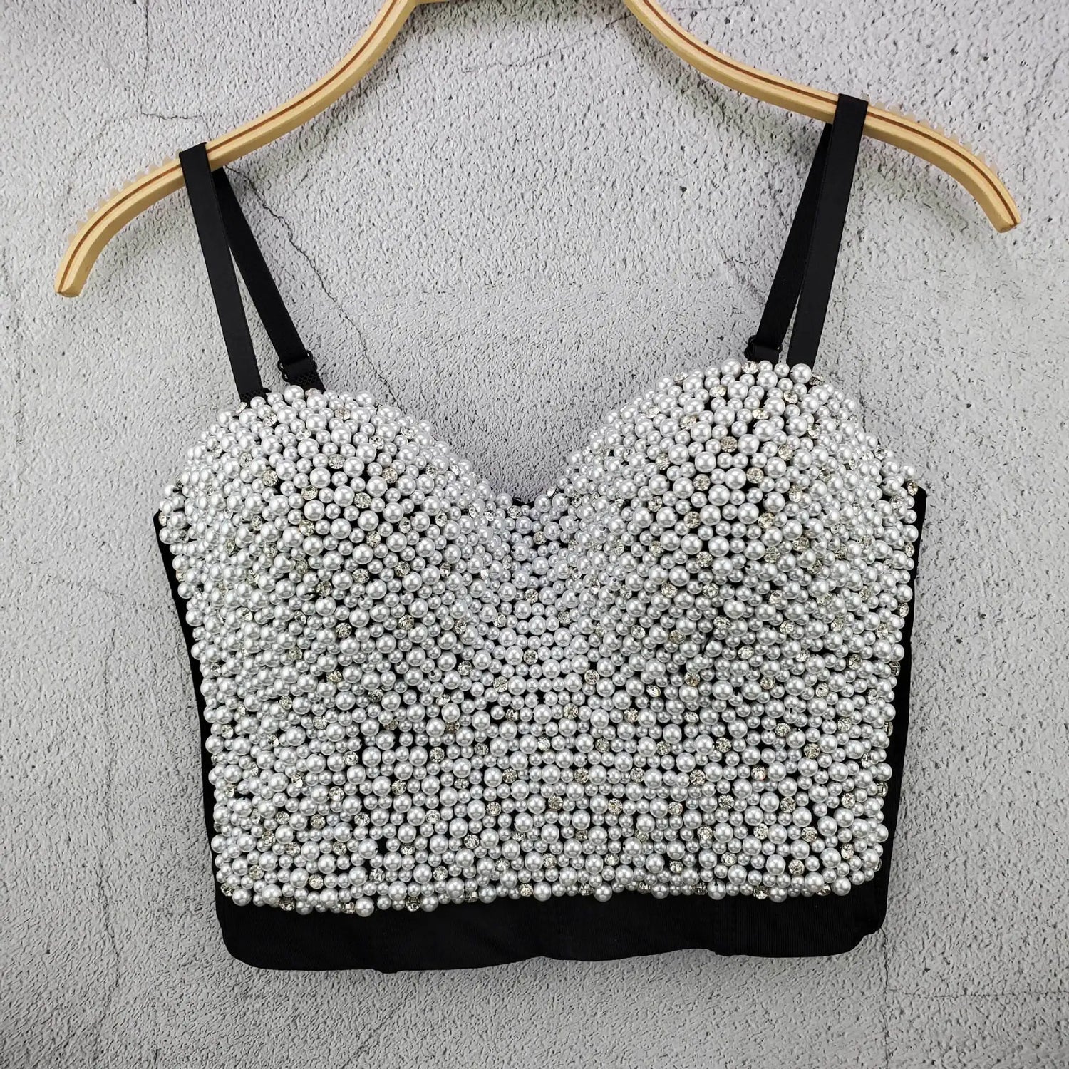 Women Sexy Boho Tank Tops Pearl Beading Handmade Fashion Women Crop Tops Female Women Summer Sexy Club Wear Camis