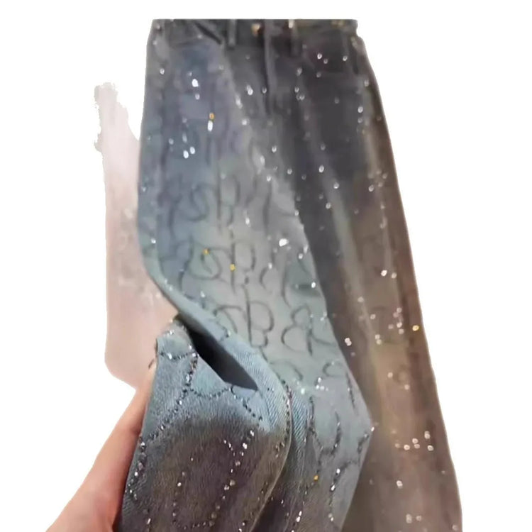 Women's Jeans 2025 New Style Heavy Industry High-end Versatile High-waisted Slim Straight Pants Blue Two-color Hot Diamond Jeans.